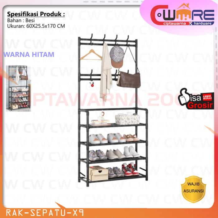 Rak Gantung Baju Topi Sepatu Sandal Tas Single 4 Sekat Portable - Nats - Hitam