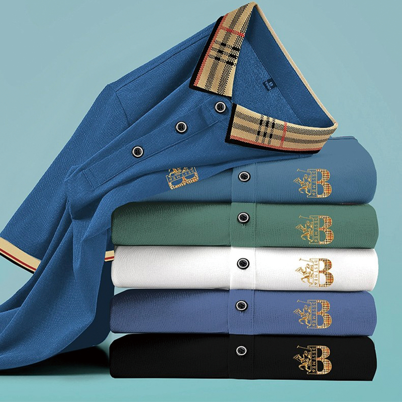 Polo shirt pria biru Korean style stretch dewasa cowok nygman kemeja kerah stand bordir premium kaos