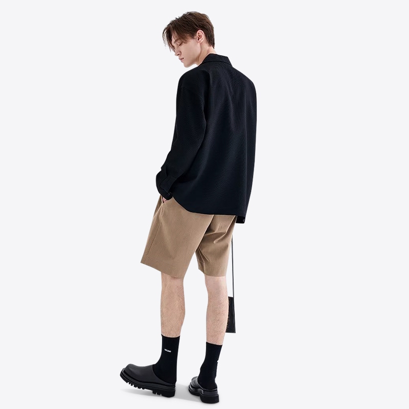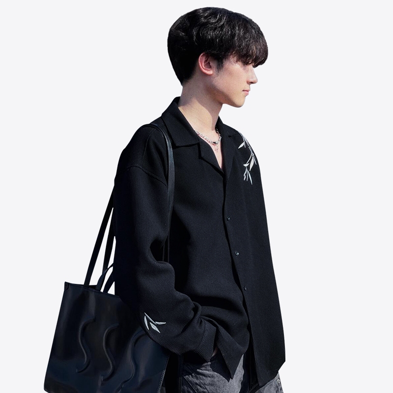 Livveharft-Kemeja Fleece Pria Lengan Panjang Bordir Kemeja Hitam/Putih Pria Baju Asimetris Pria Korean Style