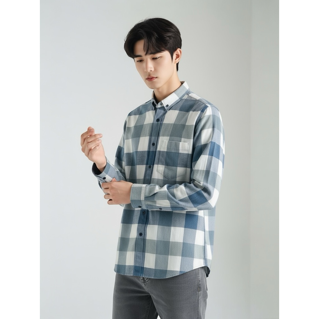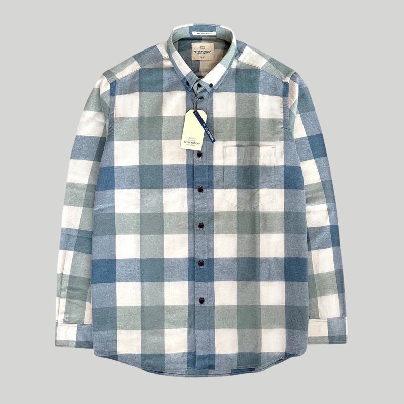Peternation kemeja flanel pria wool basic panjang regular fit