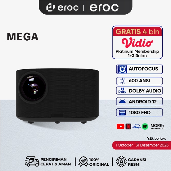 mall inline badgeEROC Smart Proyektor LCD 600 ANSI Full HD Android 12 Dolby Audio Display 200 Inch Auto Focus - MEGA