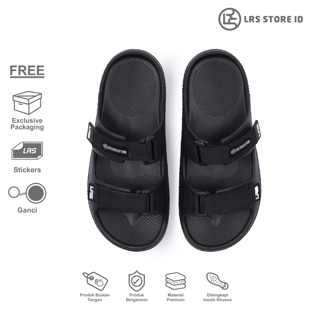 LRS Store id - Sandal Pria Arnoud Black & Yellow Sandal Casual Slop LRS Sandal Pria Selop