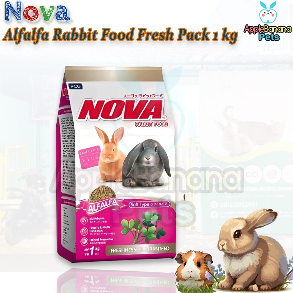 Makanan Kelinci Nova 1 kg Alfalfa - Nova rabbit food - Makanan Guinea Pig - Makanan Marmut - Nova 1 kg - Nova Freshpack