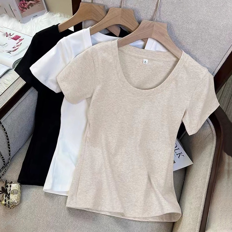 T-shirt katun lengan pendek serbaguna / baju kaos wanita korea / T-shirt leher kru stretch slim fit / kaos crop top polos