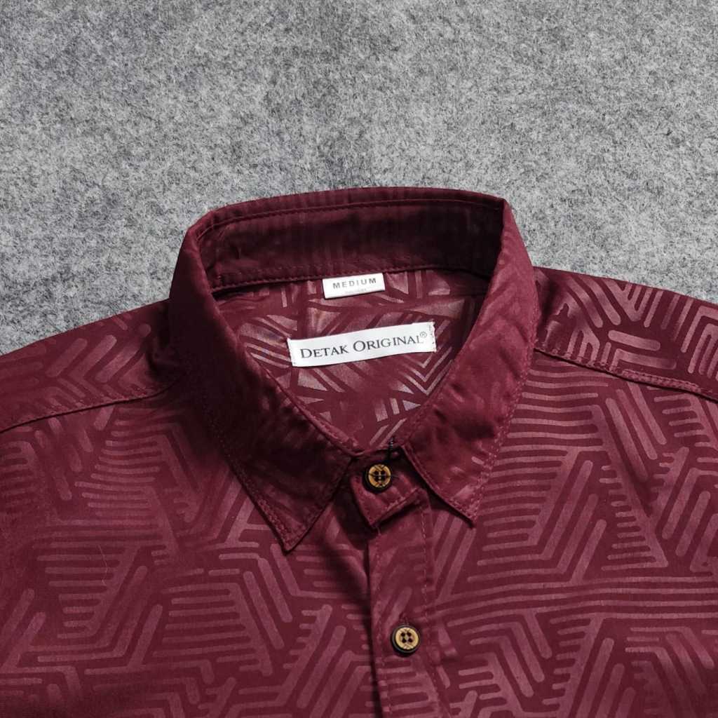 Detak Original Kemeja Embos Sultan Pria Lengan Panjang Puzzle Marun Casual Slimfit