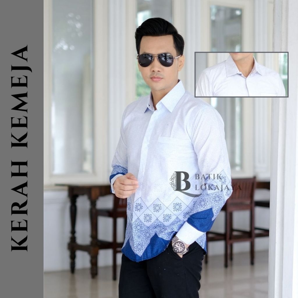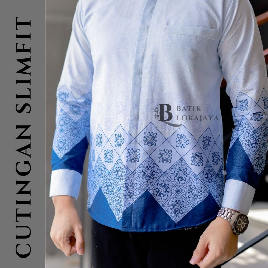 Kemeja Batik Pria Slimfit Lengan Panjang Bahan Katun 40s Lapis Furing Erro Full Body BLJ6 - Batik Lokajaya