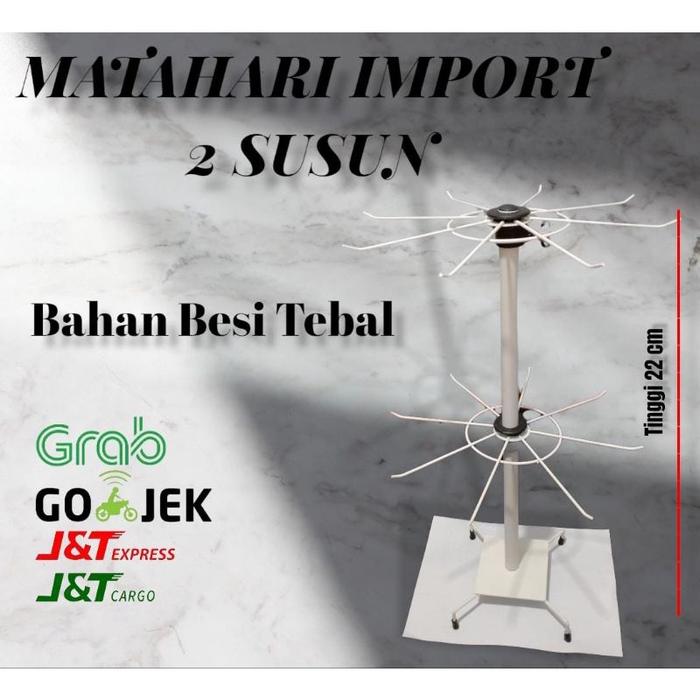 Rak Display Putar Matahari 2 Susun Besi Kuat Tebal Gantungan Display - Putih