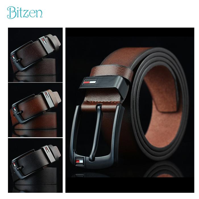 Bitzen Ikat Pinggang Pria Kulit Sintetis Premium Fashion Vintage Bisnis Pria Sabuk Hitam/ Khaki / Kopi - Hitam 120cm