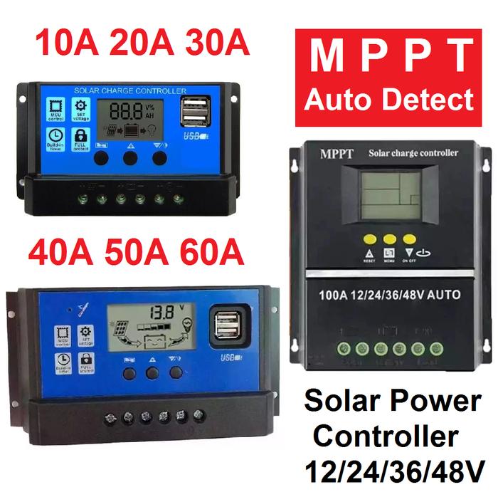 Promo Solar Charge Controller 10A 20A 30A 60A 80A 100A Cell PWM Pengisi Daya Surya 12V24V - Empat Puluh A Bestseller