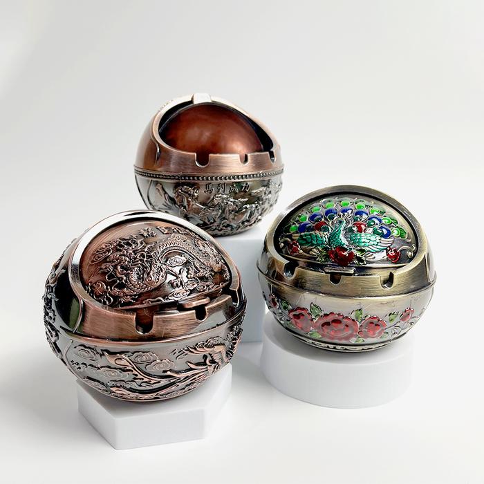 Asbak Mewah Buka Tutup Flip Klasik Besi Tahan Karat - Ng Merah