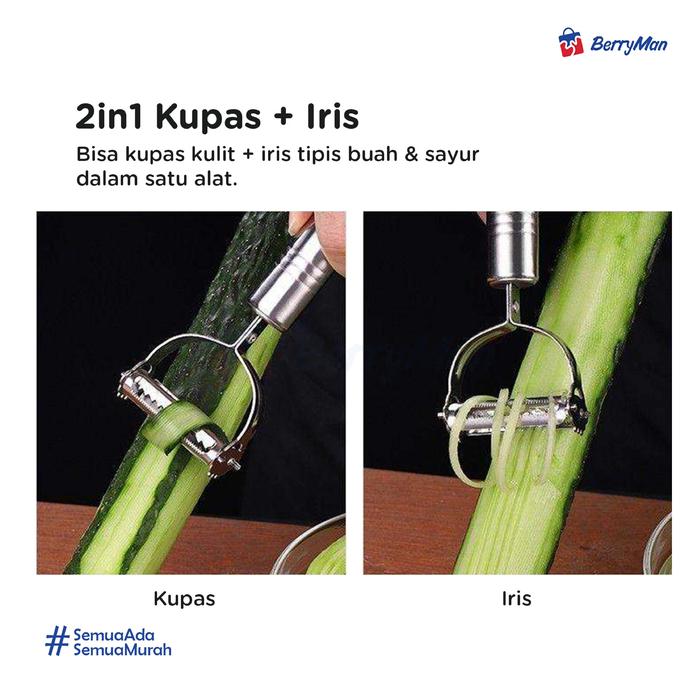 Peeler Pisau Pengupas Kulit Buah & Sayur 2 in 1 Stainless Steel Alat Pemotong Dapur Serbaguna