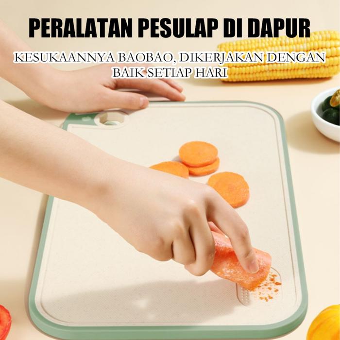 Double Sided Cutting Board, Talenan 2 sisi, Jerami Chopping Board Multifungsi dengan pemarut dan