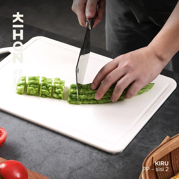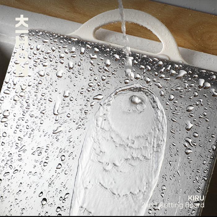 KIHON KIRU Talenan 2in1 Anti Bakteri Food Grade Stainless & PP, Tidak Merusak Pisau, Stainless Steel