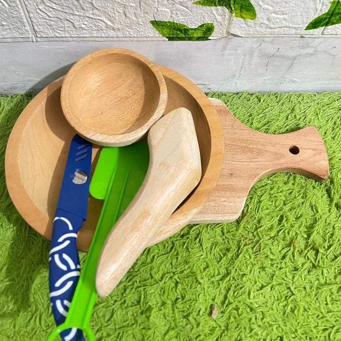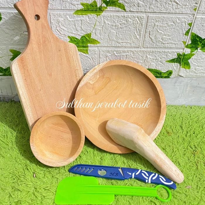 Paket Hemat Set Sambal Kumplit 6 Buah Cobek, Talenan Kayu, Pisau Buah dan Lemet - kichenware Dapur