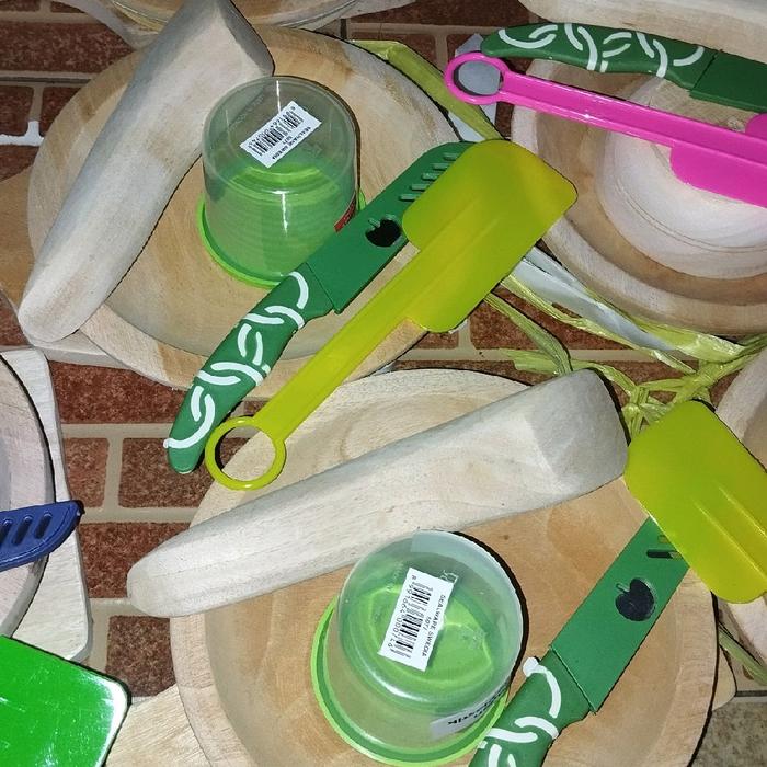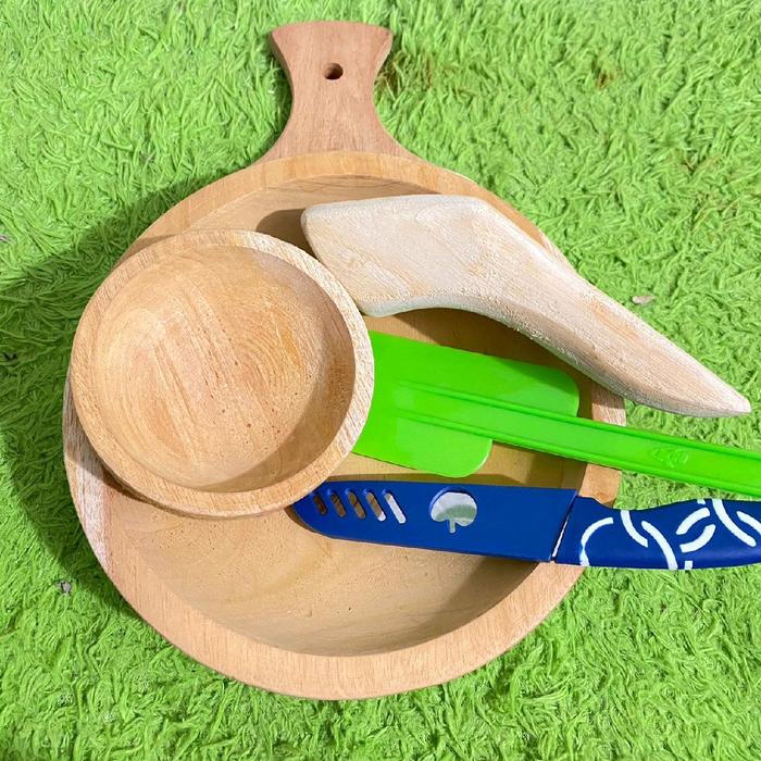 Paket Hemat Set Sambal Kumplit 6 Buah Cobek, Talenan Kayu, Pisau Buah dan Lemet - Sendok Dapur