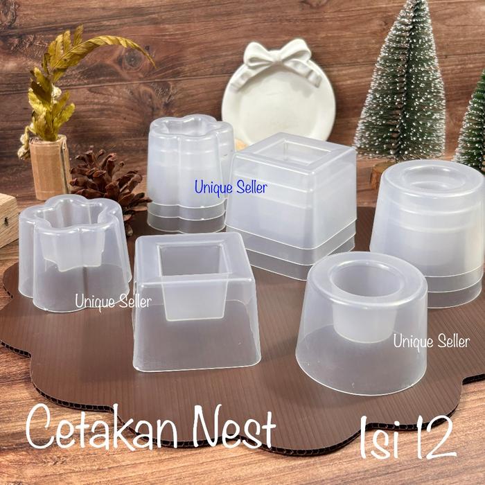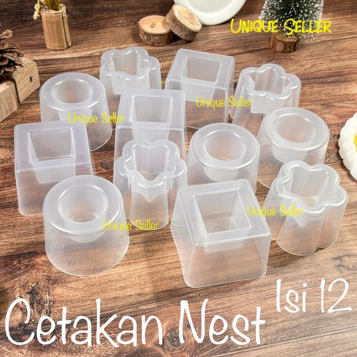 Isi 12 Cetakan Kue Kotak Lingkaran Bulat Bintang Bunga Nest Set Plastik 6.5 cm Cetakan Puding