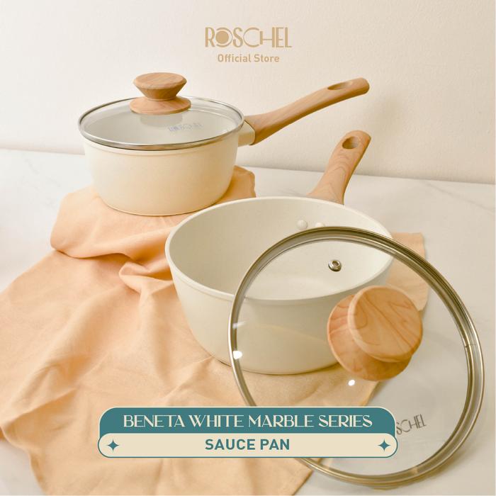 Roschel Beneta White Marble Coating Non-Stick Saucepan 16 & 18 cm + Tutup Kaca Anti Lengket Induksi