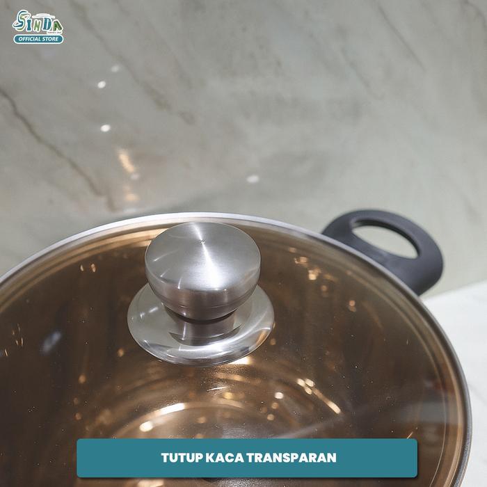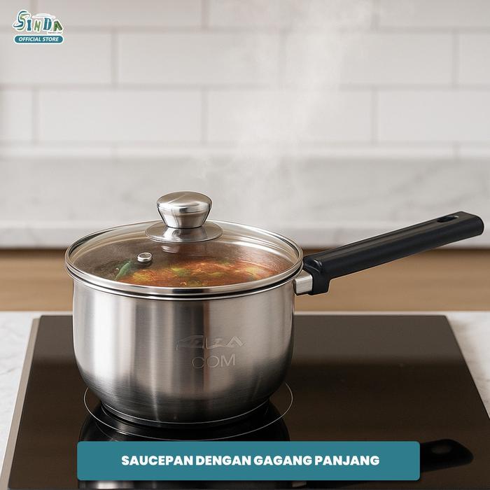 Sinda Set Panci Susu Stainless Steel Tutup Kaca 18cm & 20cm Cocok untuk Masak Mie Sup Shabu-shabu