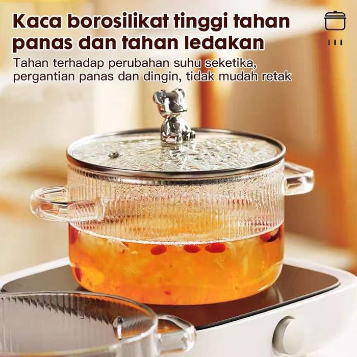 Panci Soup Rebus Kaca Tebal 1600ml Borosilicate Glass Cooking Soup Pot Transparan Anti Panas