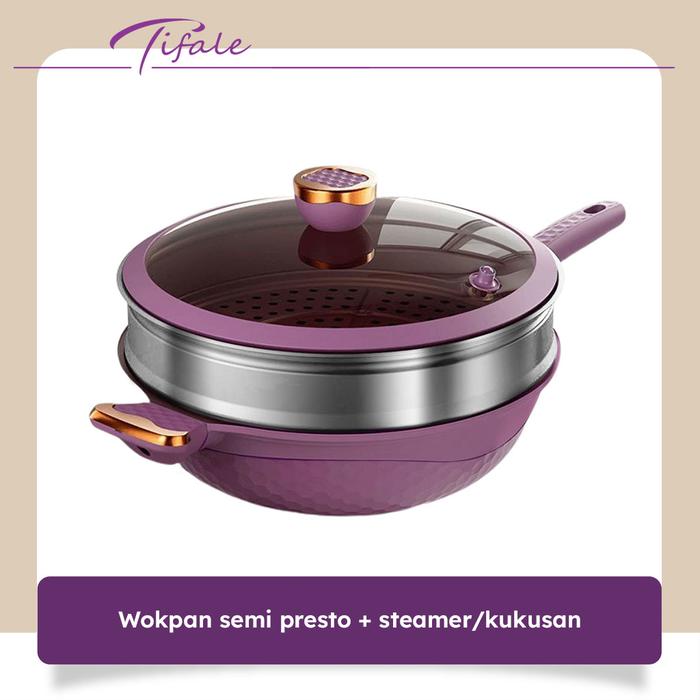 Tifale Elora Pan Series Wokpan Semi Presto 32cm + Pengukus Stainless + FREE Spatula