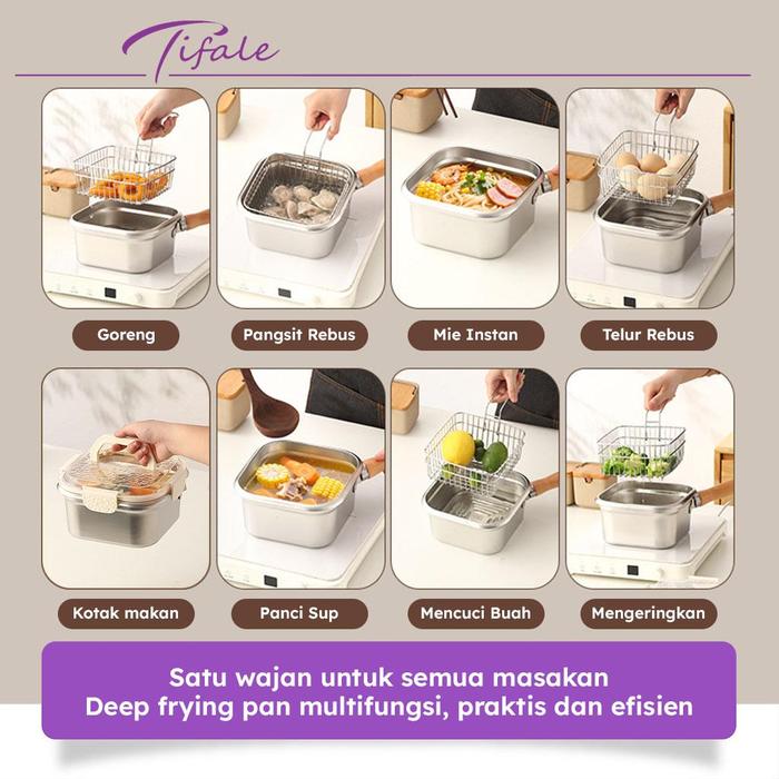 READY LANGSUNG KIRIM Tifale Squira Deep Frypan Stainless Steel Panci Kotak Anti Lengket, Cocok Semua