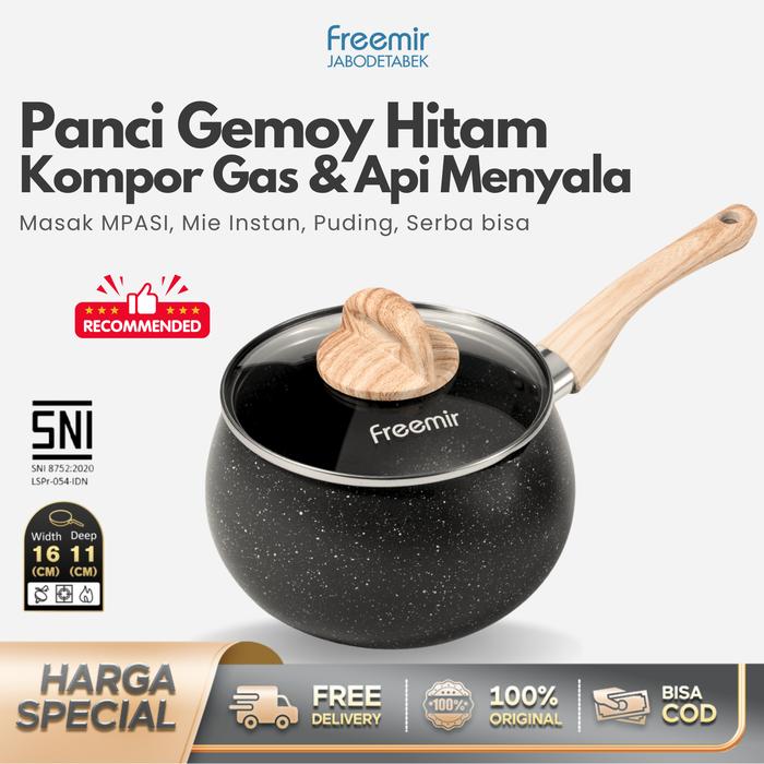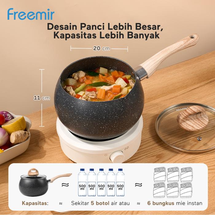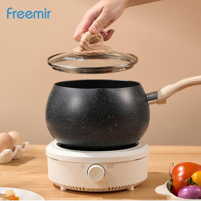 MEGA freemir Panci Susu 16 cm Panci Gemoy Batu Granit Set Wajan+Tutup Kaca Cekung Wajan Anti Lengket