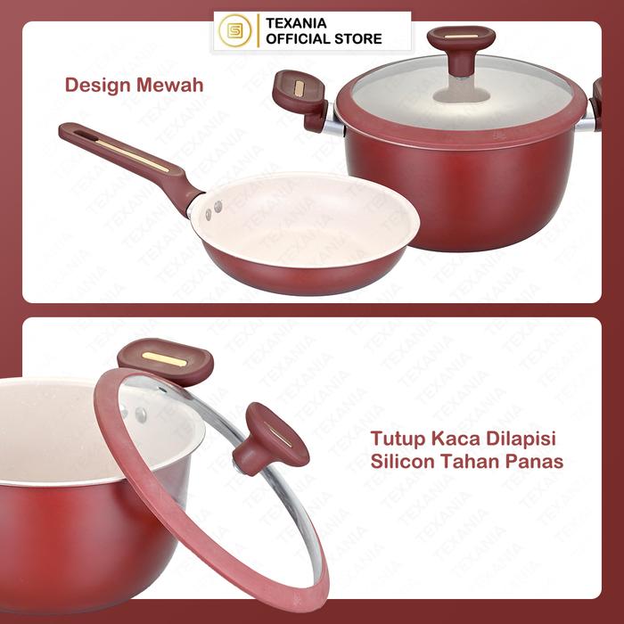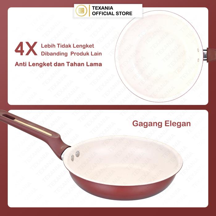 EXCLUSIVE KING KEVIN TEXANIA SET Panci Soup dan Frypan Maroon Anti Lengket 20cm Multifungsi Mudah