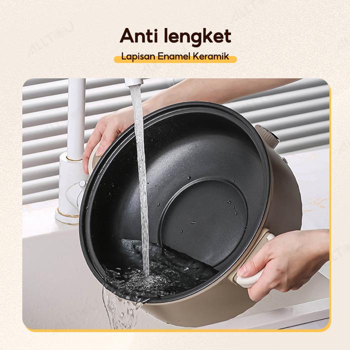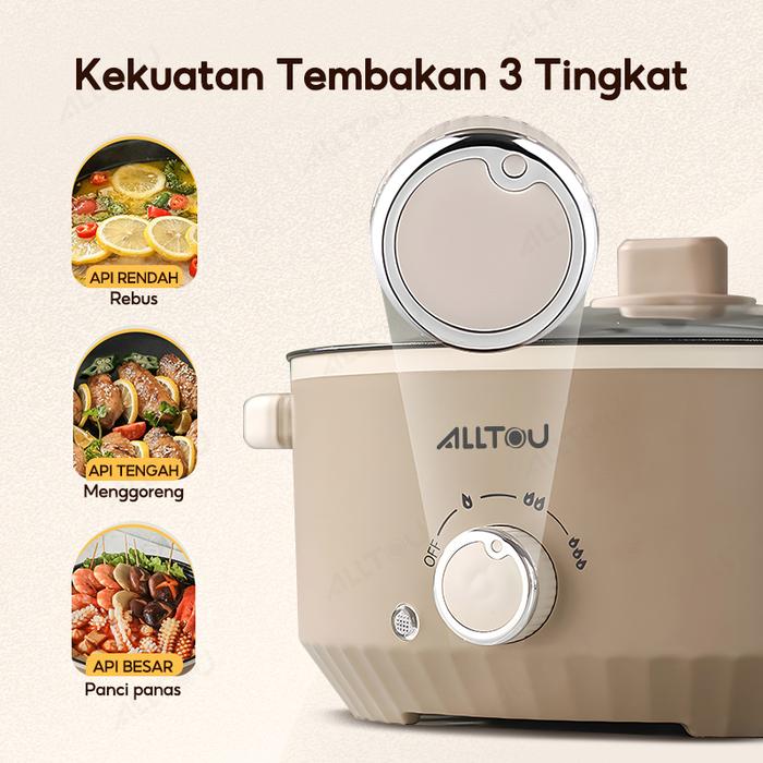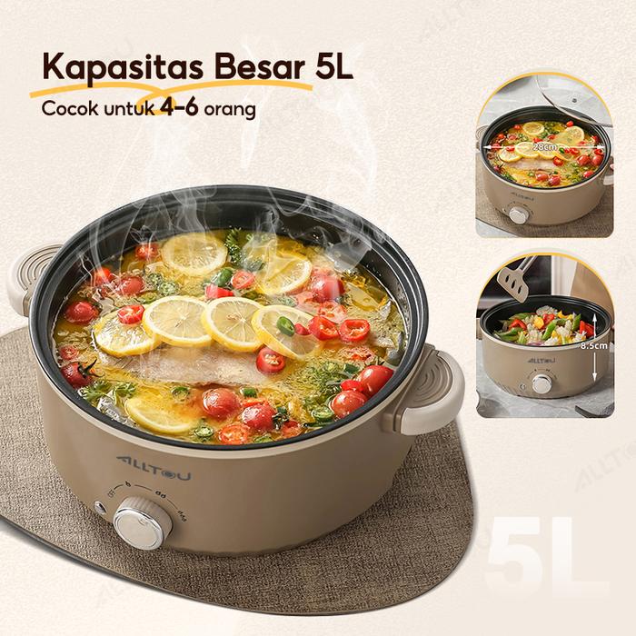 ALLTOU Panci Listrik 3L/5L Multifungsi Steamer Panci Listrik Serbaguna Anti Lengket Putih