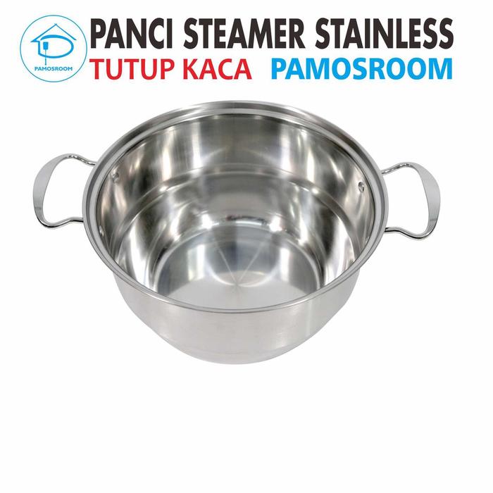 Calypso Panci Steamer Stainless 24cm + Tutup Kaca Free Kukusan 24 Cm