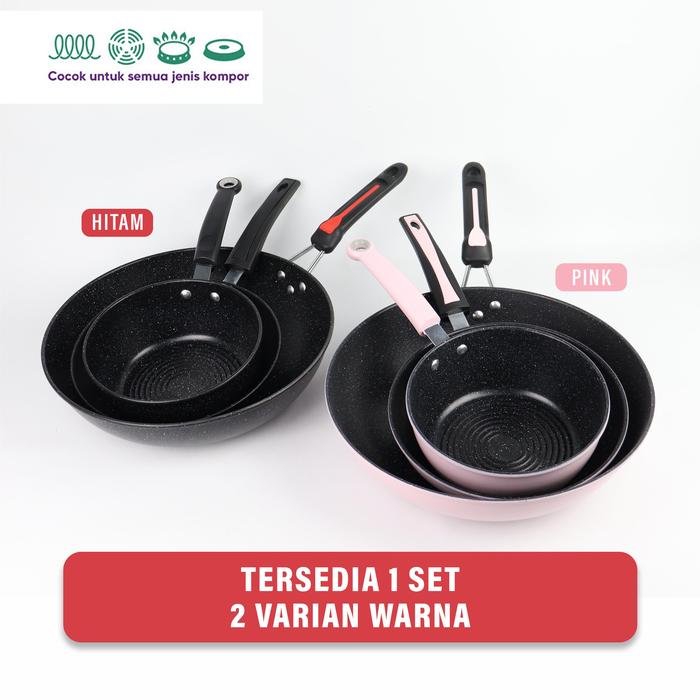 Panci Set 3IN1 Anti Lengket Teflon Panci Wajan Kitchenware Pan Tebal Wajan Penggorengan