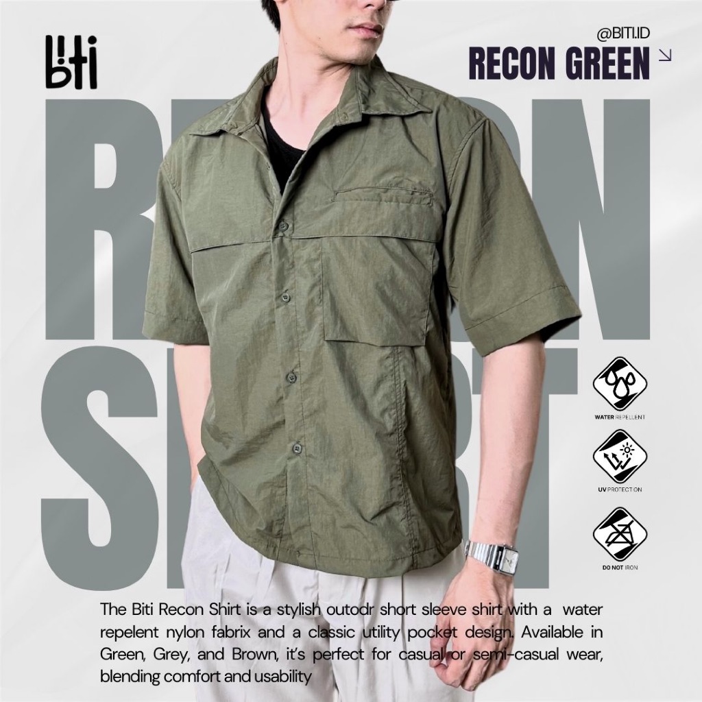 BITI Recon Shirt | Kemeja Outdoor Lengan Pendek Pria Nylon Water Repellent Anti UV