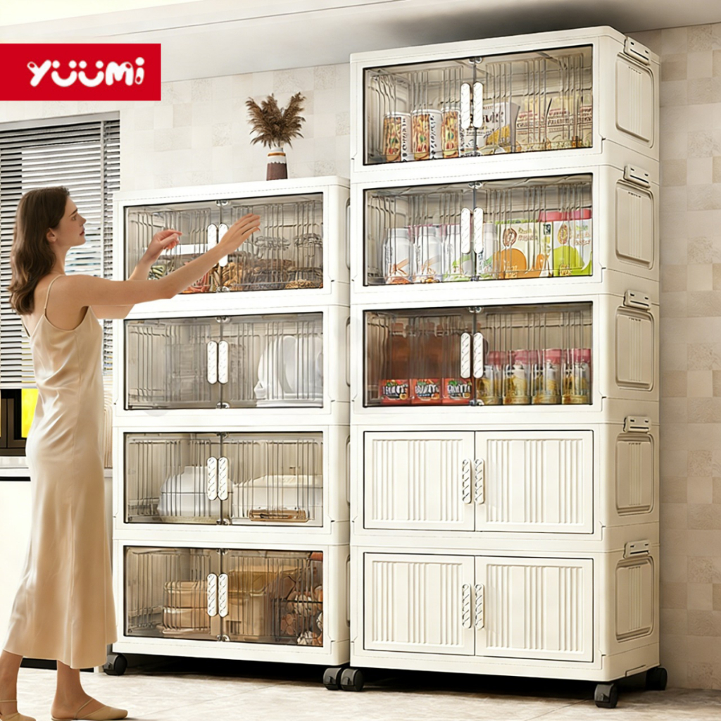 Yuumi Lemari Plastik Susun Besar Lemari Pakaian Anak & Bayi, Rak Baju Multifungsi, Organizer Hemat Ruang, Katrol Senyap, Anti Debu