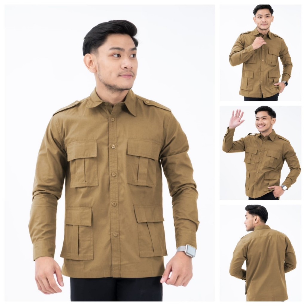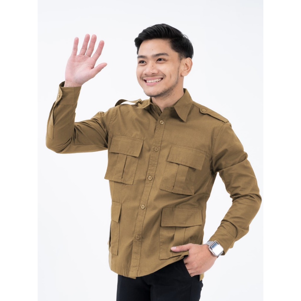 Samone - Kemeja Lengan Panjang Pria Khaki Model Pak Prabowo Original Premium THE QACIP New Ukuran BIG SIZE/