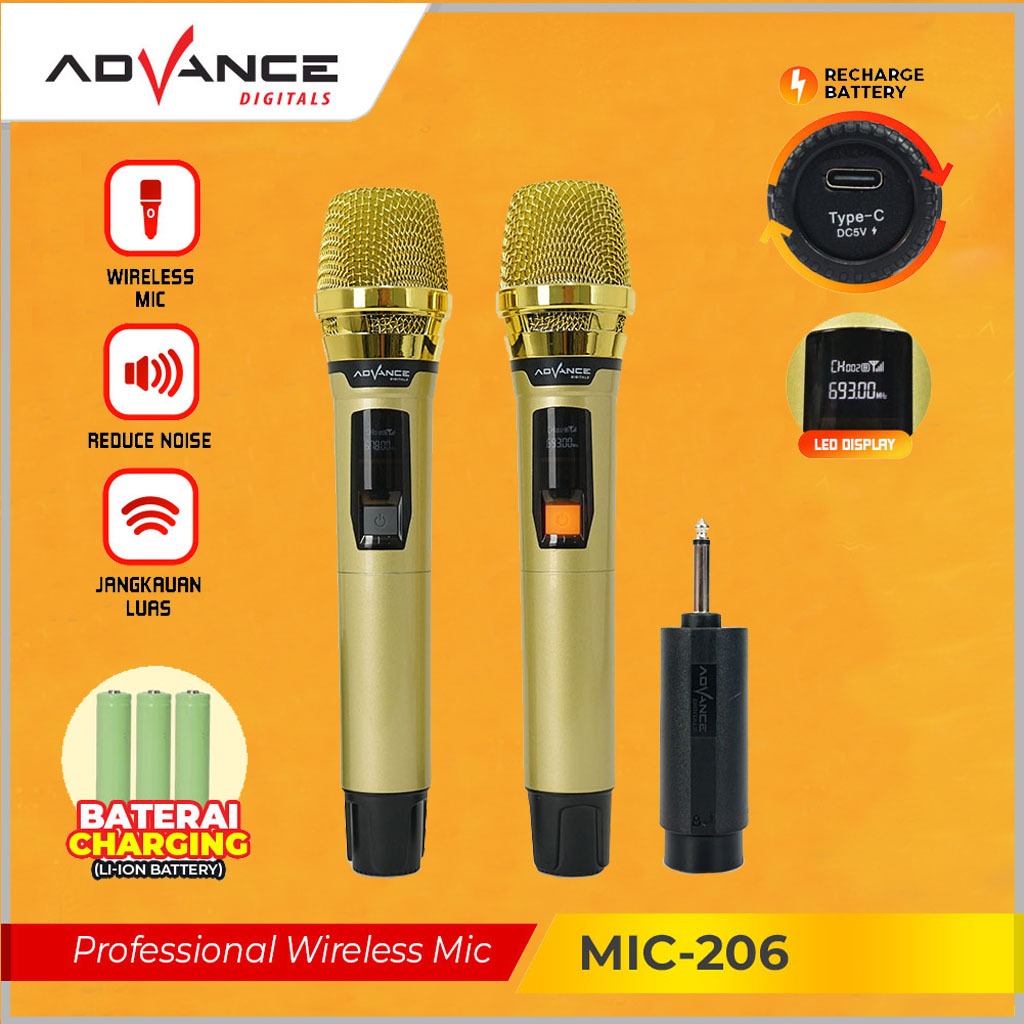ADVANCE Professional Wireless Microphone MIC-206 Mikrofon Tanpa Kabel Bisa di Charger Mikrofon