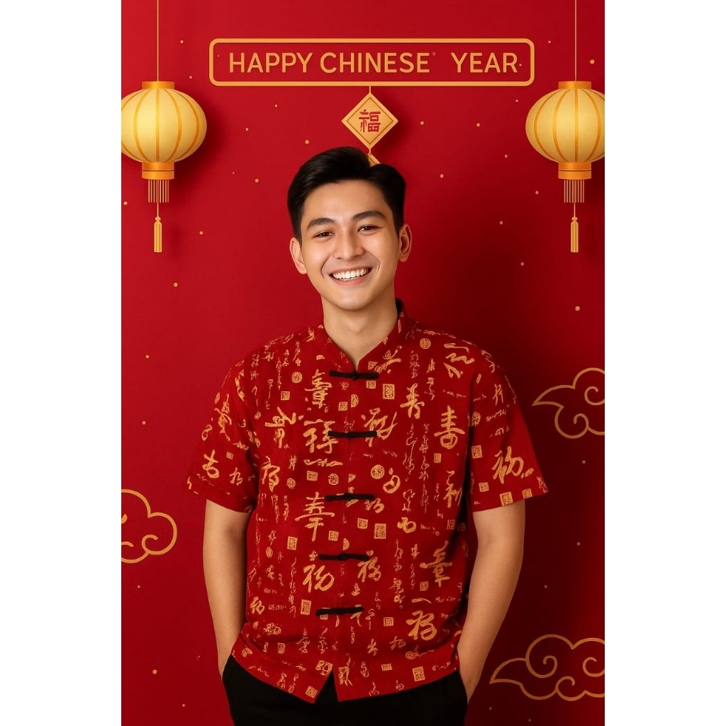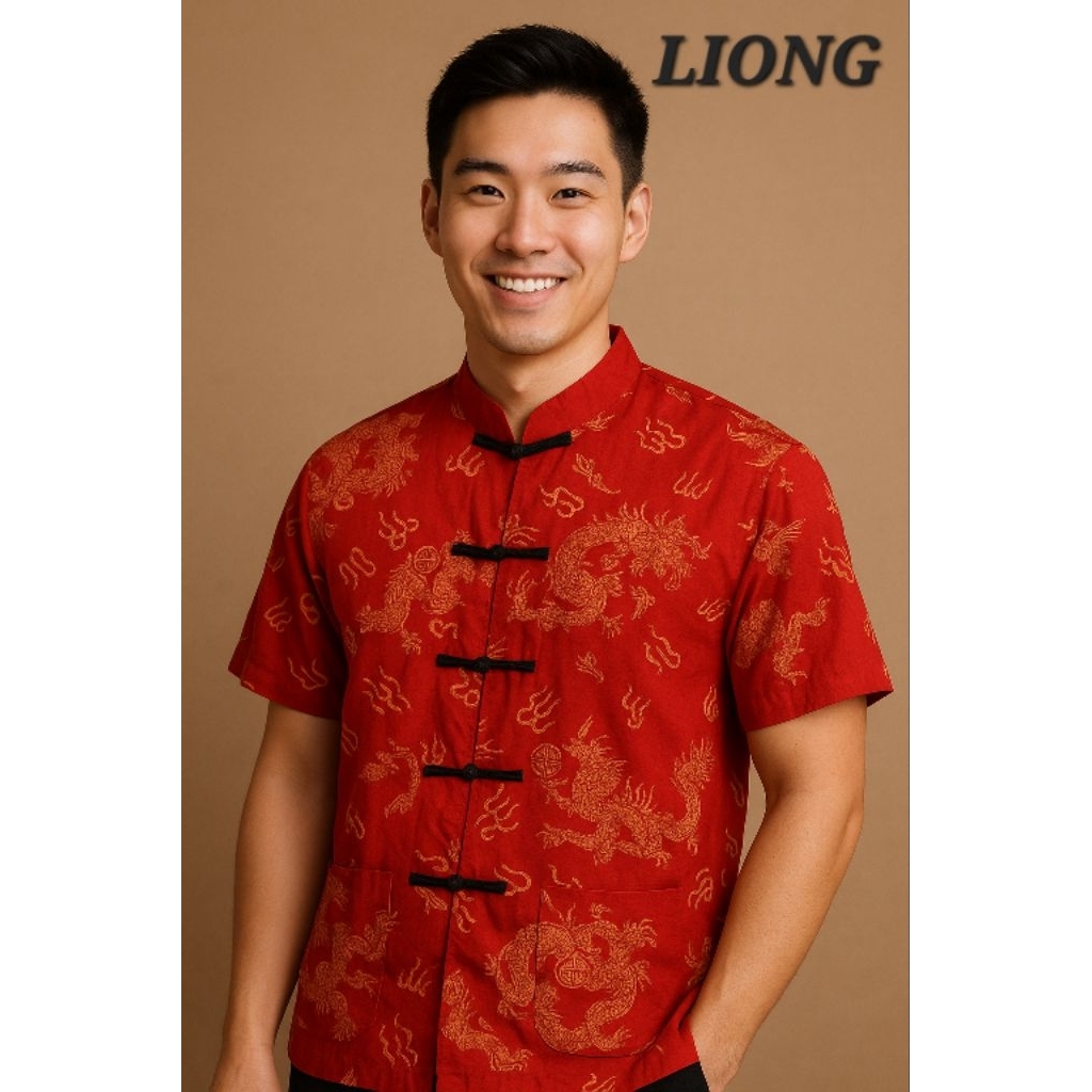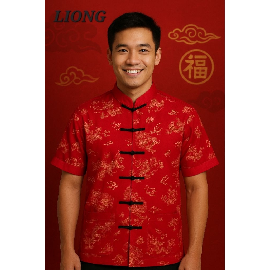 ATASAN / KEMEJA CHEONGSAM IMLEK LAKI/ PRIA REMAJA/ DEWASA MERAH