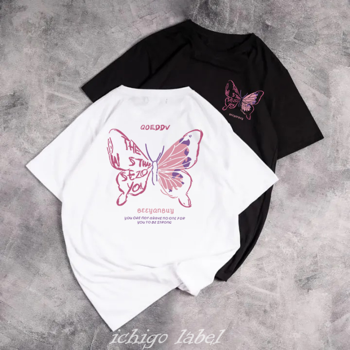 T-shirt Pink Butterfly Qoeddv Print | Kaos wanita terbaru | Kaos Butterfly