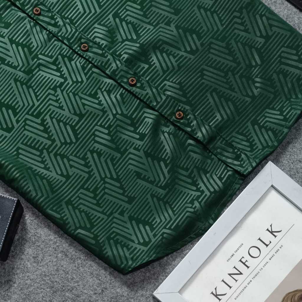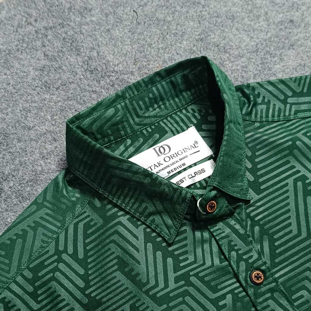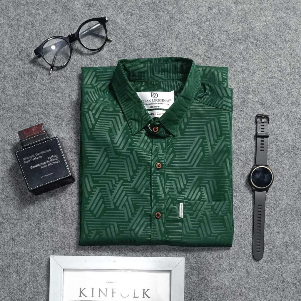Detak Original Kemeja Embos Pria Lengan Pendek Motif Puzzle Hijau Botol