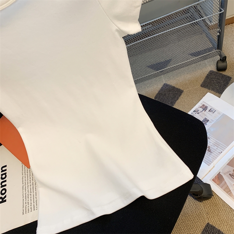 Kaus Pendek Leher Bulat Bergaris Warna Polos Atasan Kaus Ketat Elastis Seksi Fashion Wanita Gaya Korea
