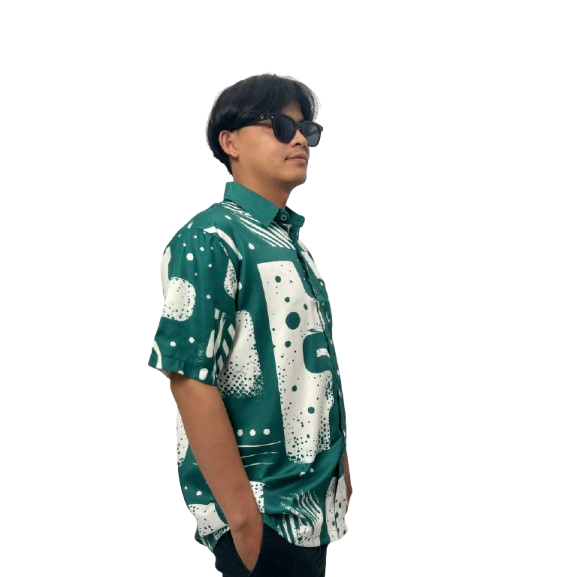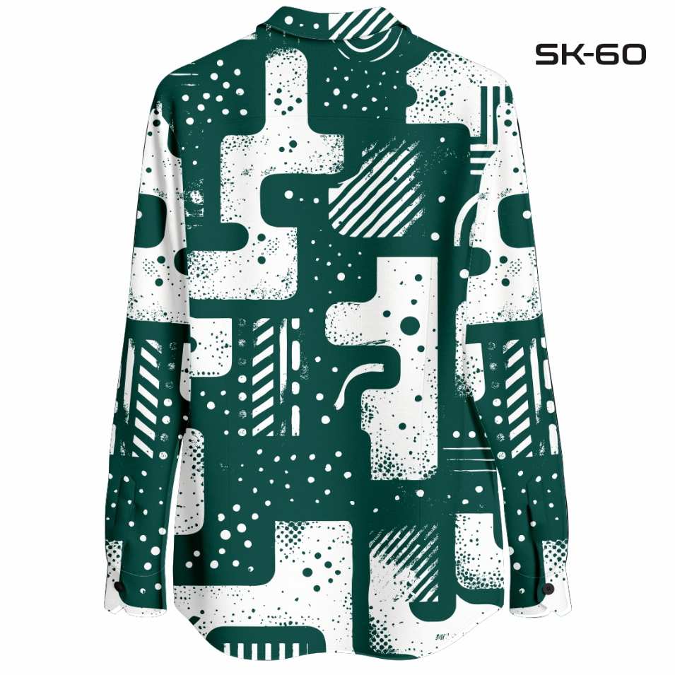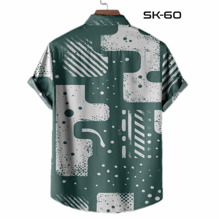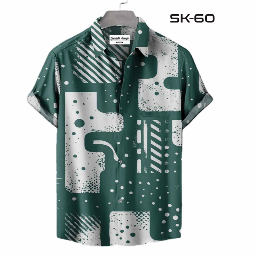 Kemeja Kasual Pria Motif Abstrak Geometris - Hijau Printing Tangan Panjang Pendek SK-60