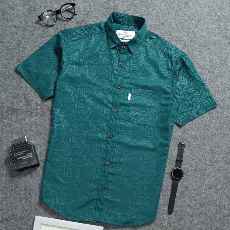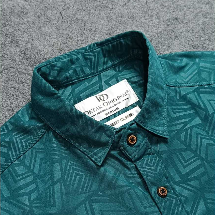 Detak Original Kemeja Embos Pria Lengan Pendek Motif Etnik Tosca