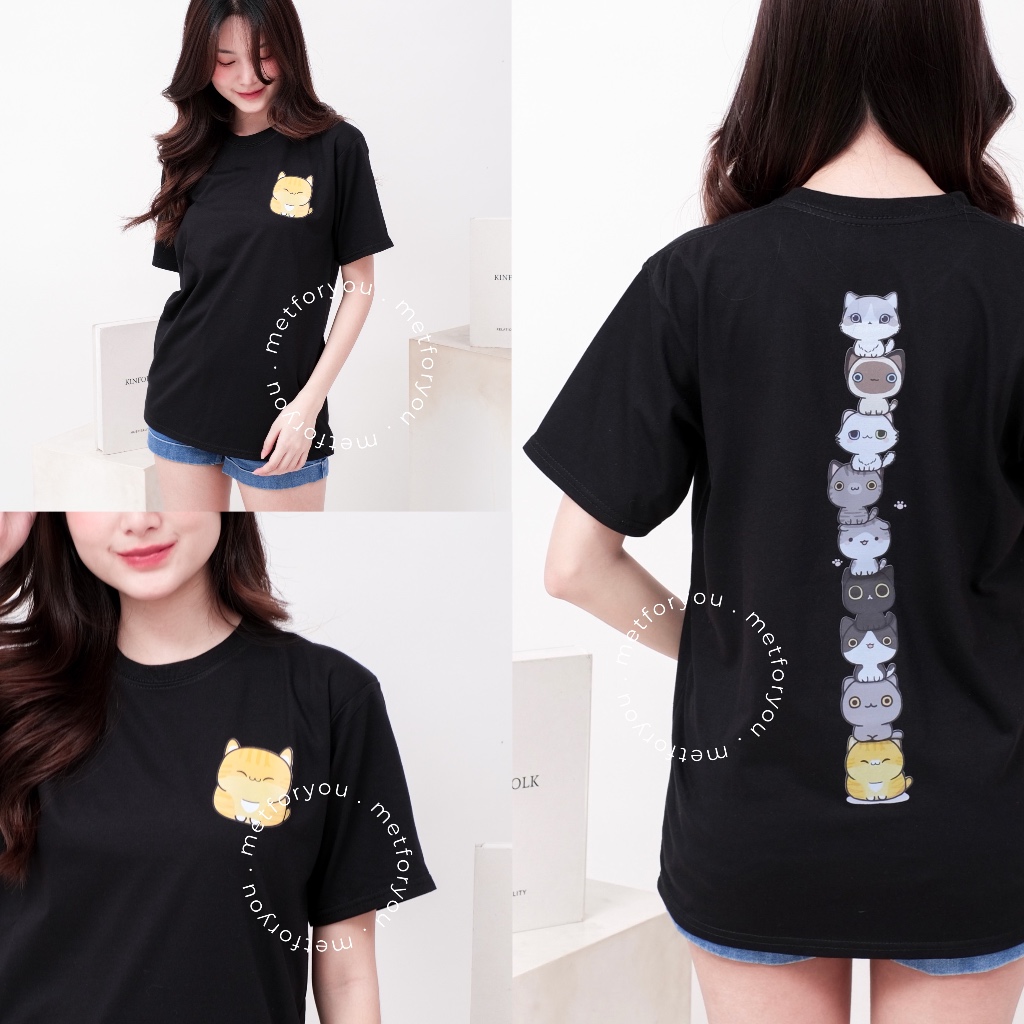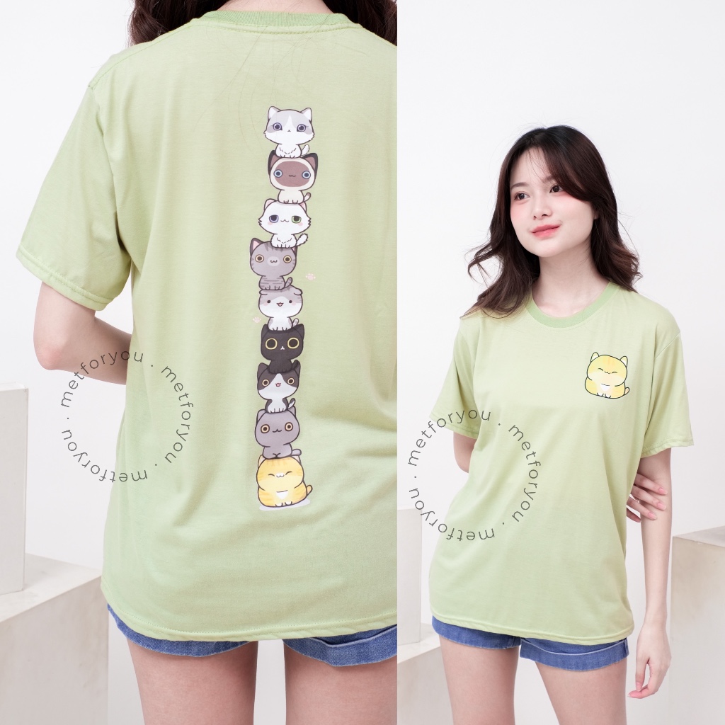 METFORYOU Kaos Wanita Oversize Katun - Stacko Cats