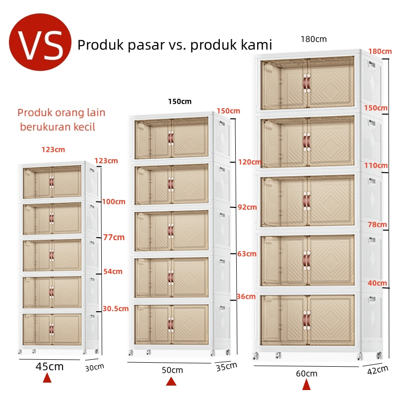ABC BEAR Lemari bayi Plastik lemari pakaian plastik Lemari Pakaian Anak lemari makanan ringan Lemari Plastik Lipat Lemari Pakaian Serbaguna 5 Tingkat