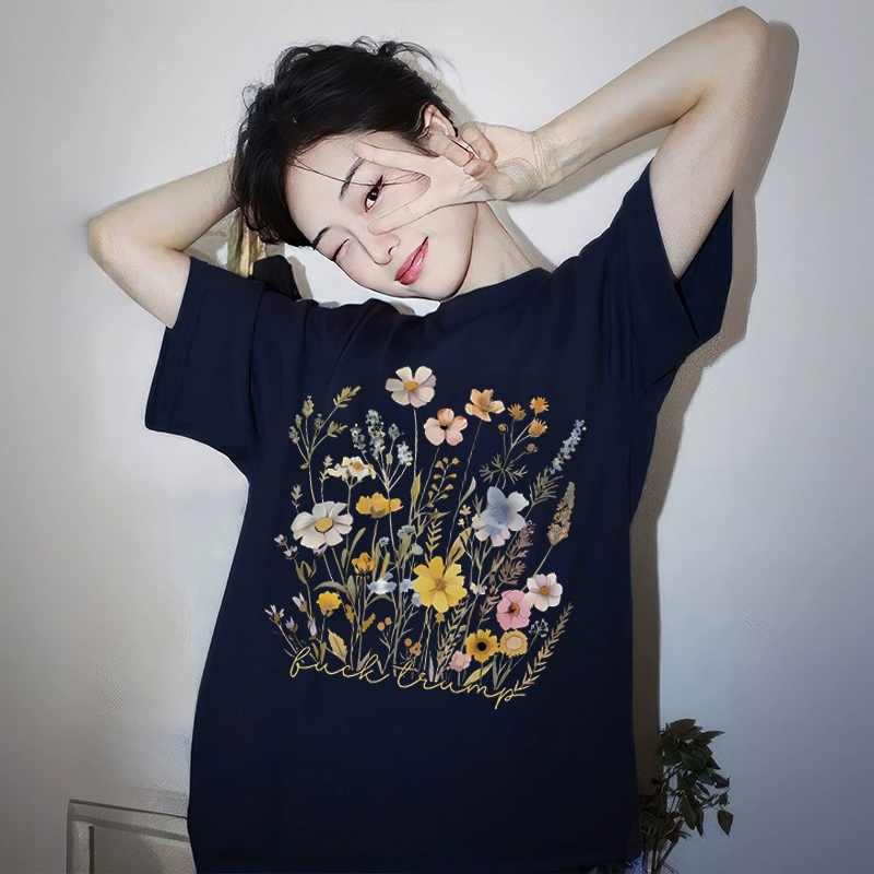 The Monseur Gallery Kaos Wanita Oversize Flowers Style baju atasan wanita terbaru | Kaos baju Navy blue