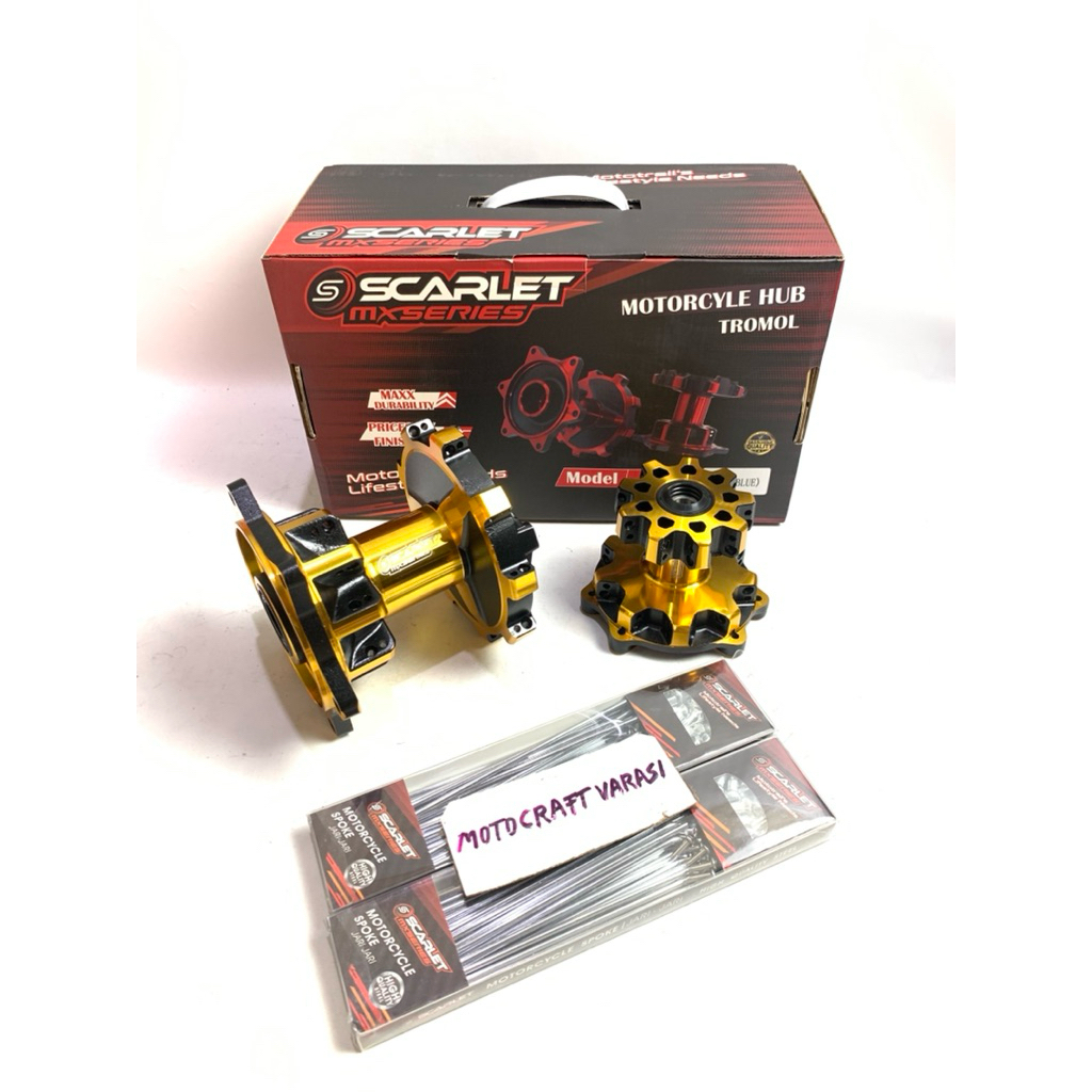 Scarlet Racing - Tromol Trombol Hub Trail Depan Belakang Set 2 Tone Crf 36 Hole Double Bearing + Jari Jari Chrome R 17