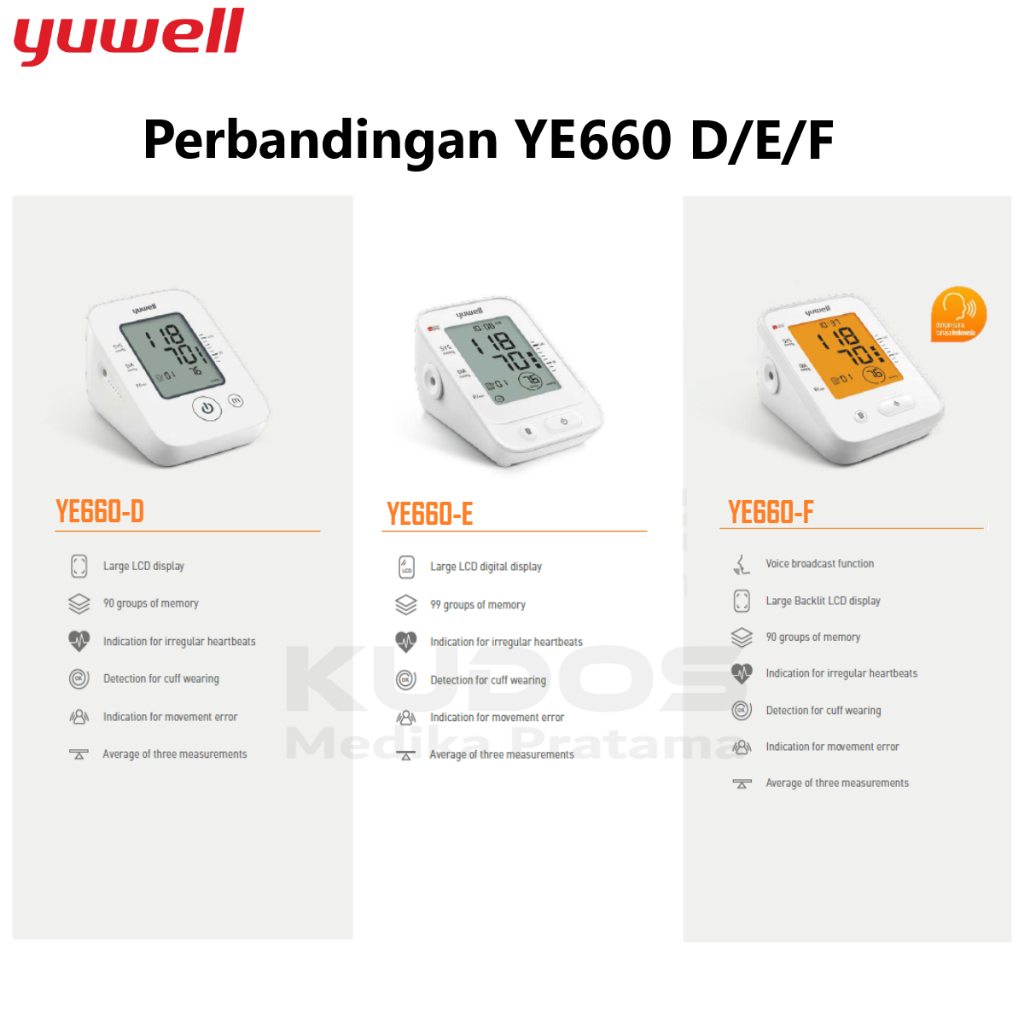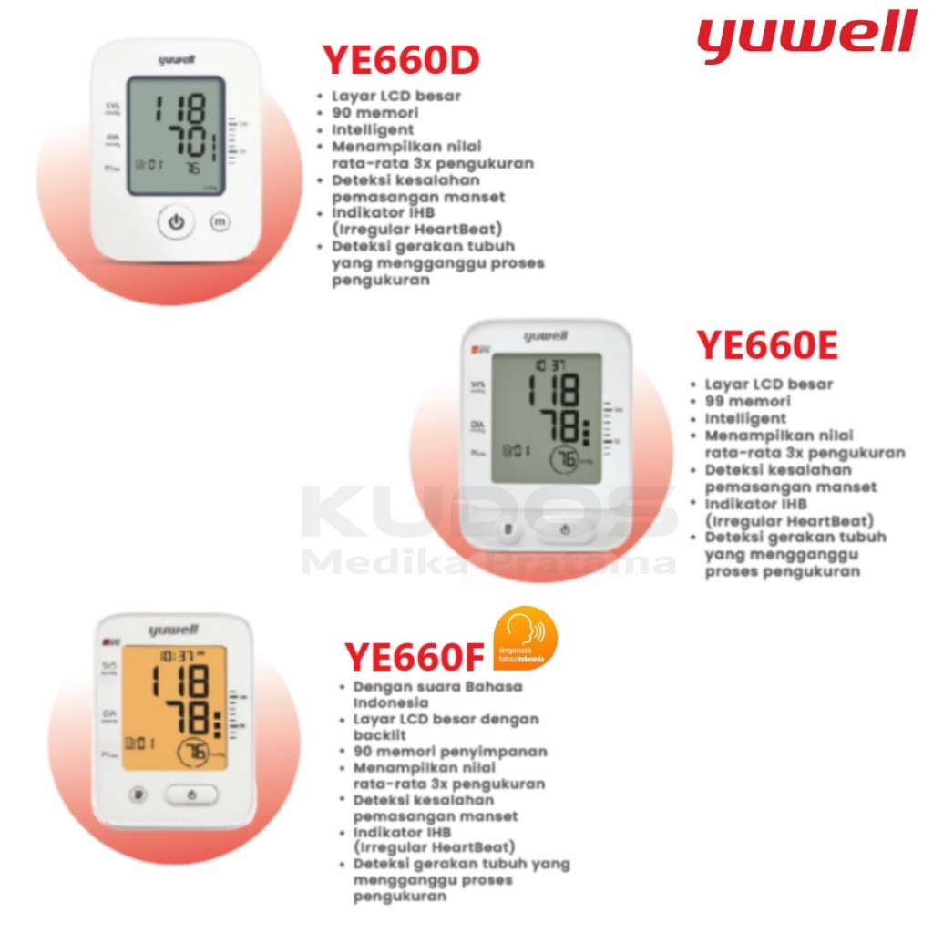 Tensimeter Yuwell - YE660D YE-660 White YE660E YE660F - Alat Ukur Tekanan Darah Tensi - Digital Blood Pressure