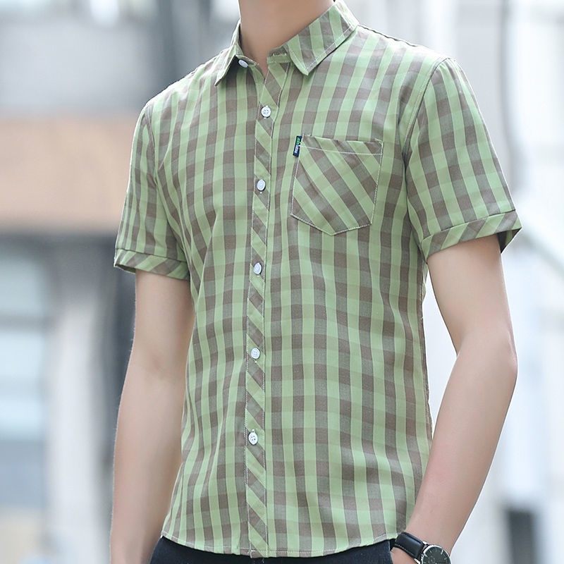 Shirt men's short sleeved Korean version trendy summer thin slim fit handsome shirt Hong Kong casual men's large stripe size shirt