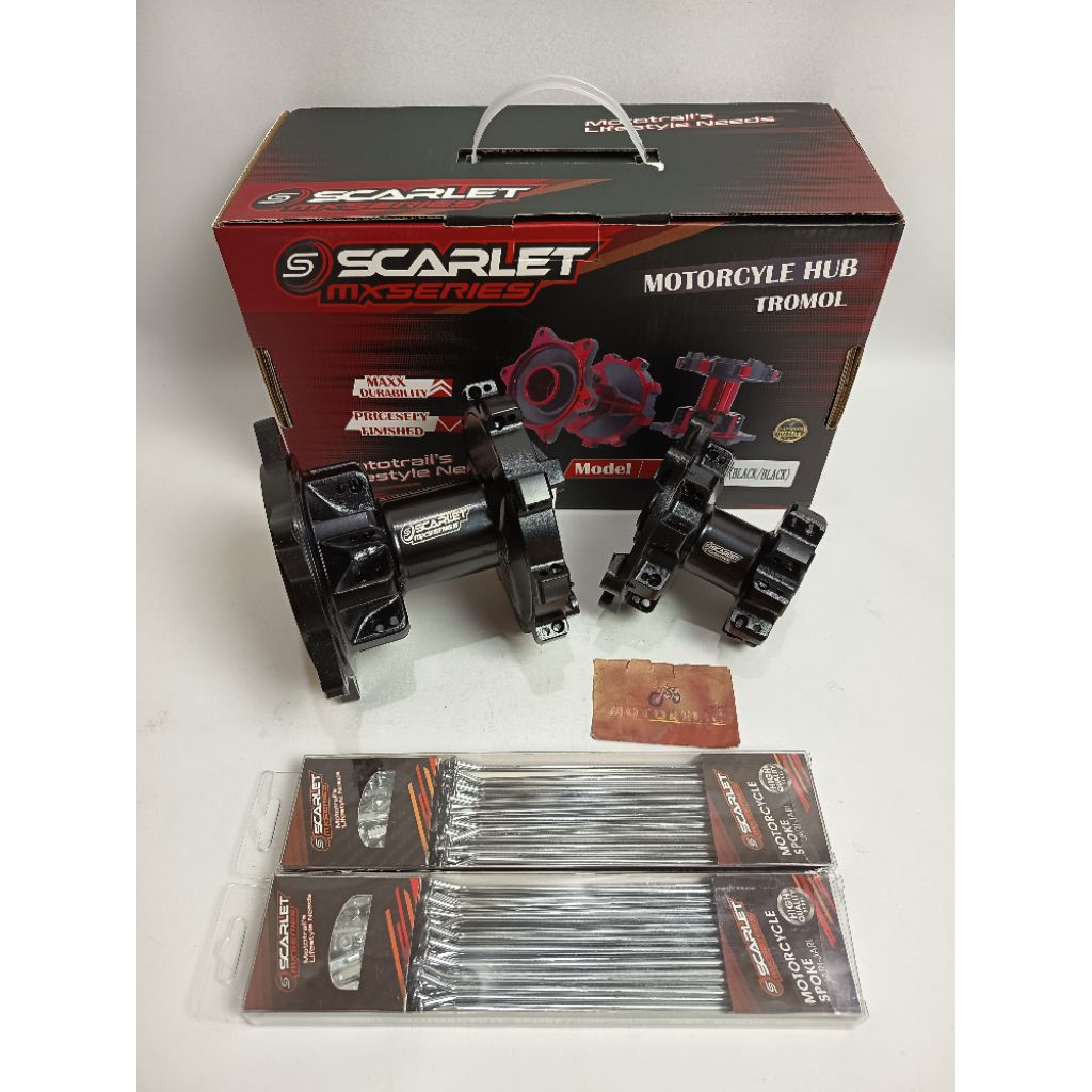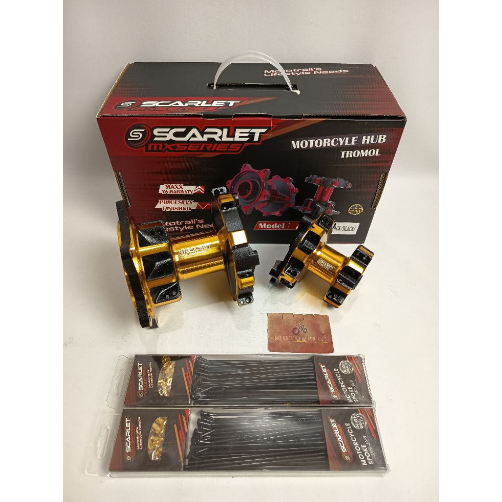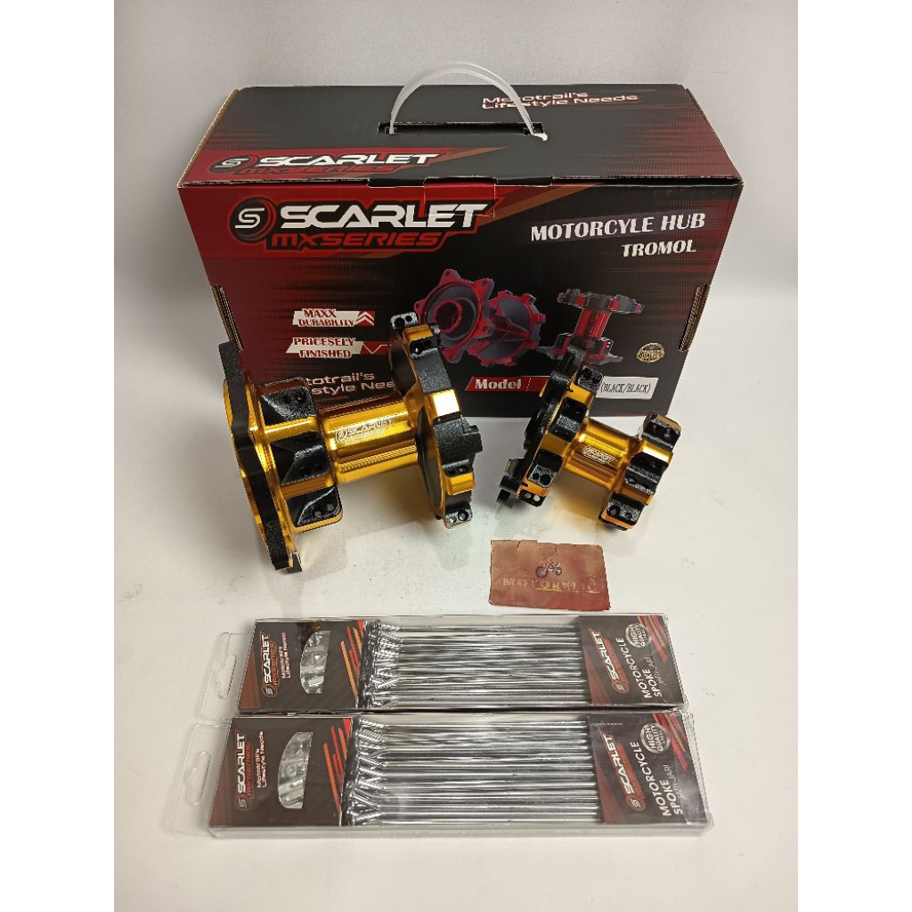 Scarlet Racing - Tromol Trombol Hun Trail Depan Belakang Set 2 Tone Crf 36 Hole Double Bearing + Jari Jari Chrome