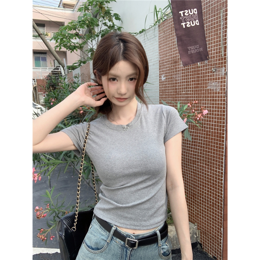 2TOYOUNG korea import basic polos crop rib kaos / Atasan Melar Slim Fit Seksi Wanita