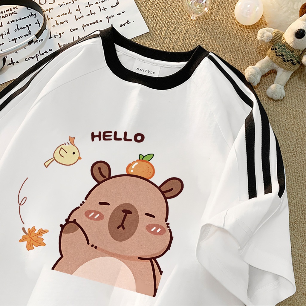 Forteid cetakan merek trendi retro Baju Oversize Motif cetak capybara yang lucu Korean Style Kaos Longgar kaos merah putih agustusan