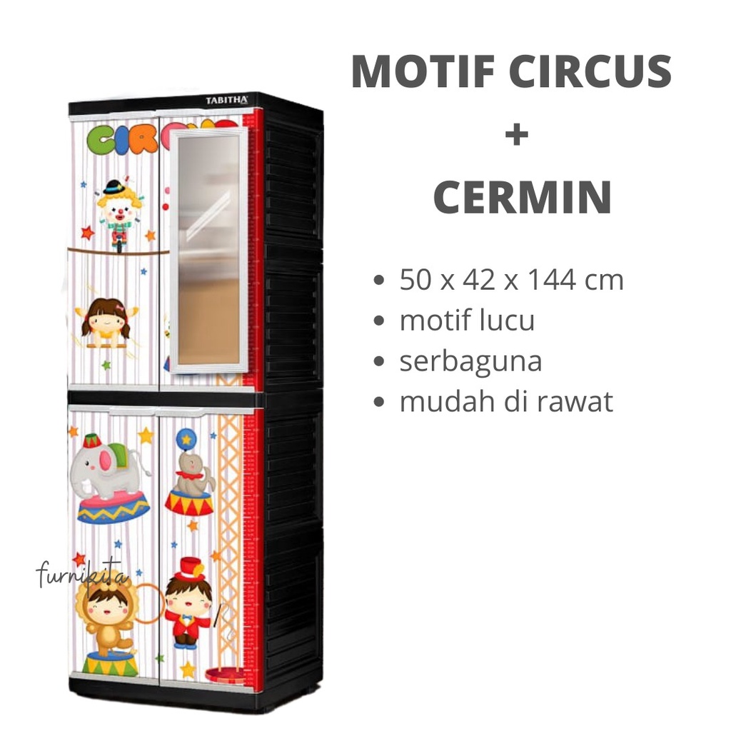 LEMARI PAKAIAN PLASTIK TABITHA DENGAN CERMIN KARAKTER FULL KUNCI